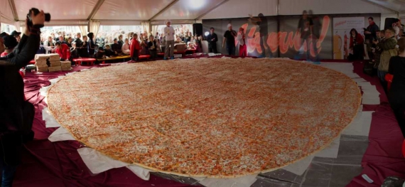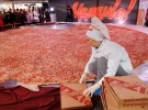 Рекордна піца важить 350 кілограмів, складалася із 4950 штук. Усі роздали шматки за 20 хвилин.