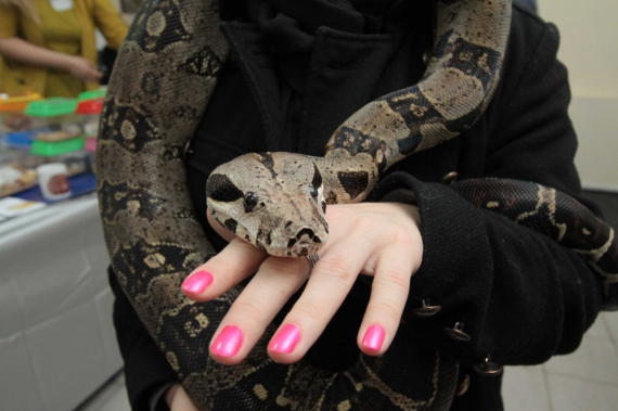 На вихідних у столичному Будинку природи відбулася виставка екзотичних домашніх тварин. Власники принесли породистих кроликів, удавів, павуків, тхорів.