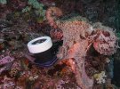 Тварина вчепилась щупальцями і не бажала віддавати. Дайвер змушений був переслідувати молюска, намагаючись відібрати обладнання.
