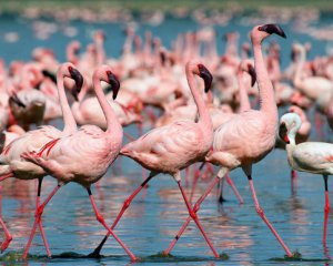 З квітня вони збираються на "шлюбній території" поблизу болота. Фламінго уже мають поповнення: 2,5 тис. пташенят. У заповідник з'їжджаються орнітологи та сотні волонтерів, перевіряють стан птахів, беруть аналізи та роблять заміри.