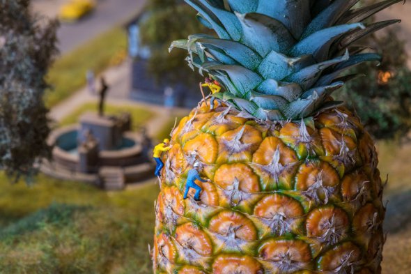 Дизайнер Петер Чакварі з Угорщини створює мініатюрні предмети, людей, тварин і фотографує їх. До своїх міні-людей він додає звичайні побутові предмети.