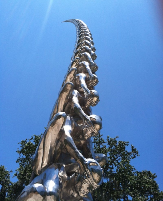Її висота всього 7 метрів, але за рахунок незвичайної форми у глядача складається враження, що вона нескінченна. Скульптура само складається з 98 людських фігур із нержавіючої сталі. Інсталяція являє собою скульптуру великої кількості чоловіків, які сидять один у одного на плечах, при цьому закривають одне одному очі руками. Схоже на сходи, що йдуть у небо.