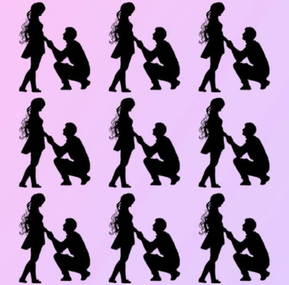 Якщо не вдалося. то ось відповідь на цю розумову головоломку. Непарна пара знаходиться у 2-му рядку та 2-му стовпчику. Сукня у дівчинки коротша ніж у інших дівчат. Решта пар одягнені в однакові сукні.