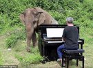 Піаніст грає слонам повільні, класичні номери. В його репертуарі 28 композицій. У кожного слона свій смак. Дикі мавпи також приходять послухати класику. Вони збираються групами на скелі поруч і слухають.