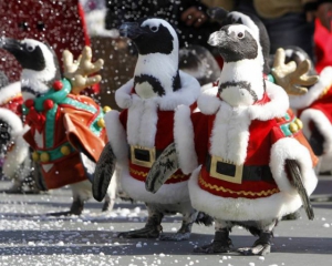 У японському місті Мацуе відбувся парад пінгвінів. Тварини були одягнені в костюми різдвяних ялинок або Санта Клаусів. Шість пінгвінів пройшлися по доріжці на очах у сотень перехожих під урочисту музику.
