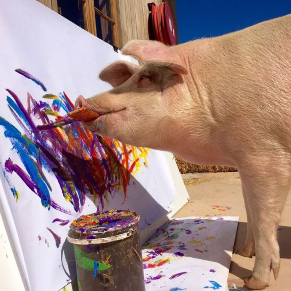 Південноафриканська правозахисниця Джоанн Лефсон забрала до себе свиню Піккассо, врятувавши його від яток пару років тому. Привезла тварину на свою ферму. Виявилося, свиня вміє малювати.
