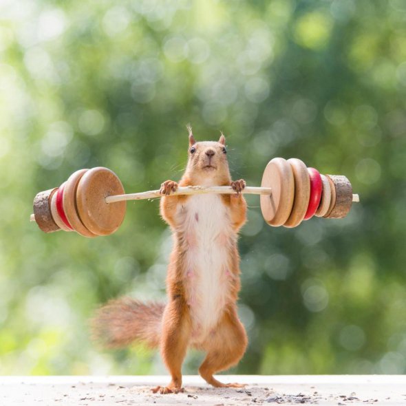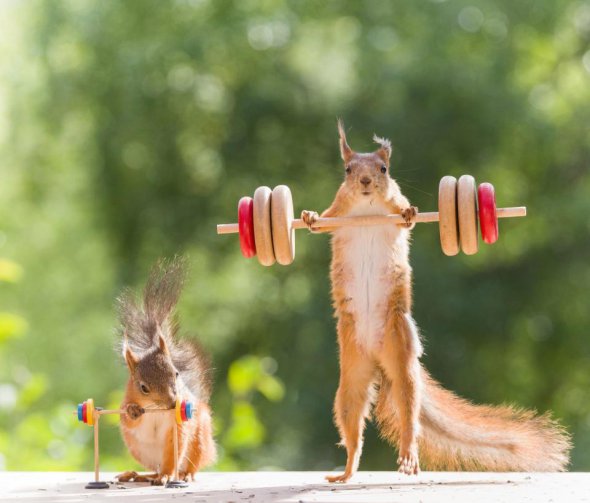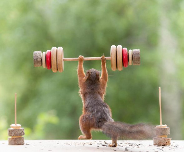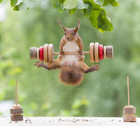 Тварини теж захоплюються спортом. Голландському фотографу Герту Веггену вдалося закарбувати унікальні кадри, на яких білки займаються важкою атлетикою.