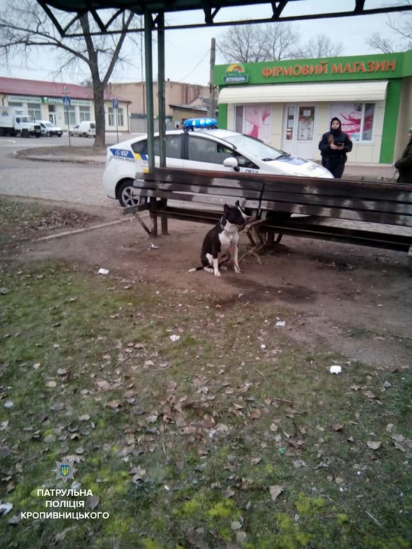 У Кропивницькому патрульні знайшли господаря собаки, який прив'язав її на зупинці і не повернувся.