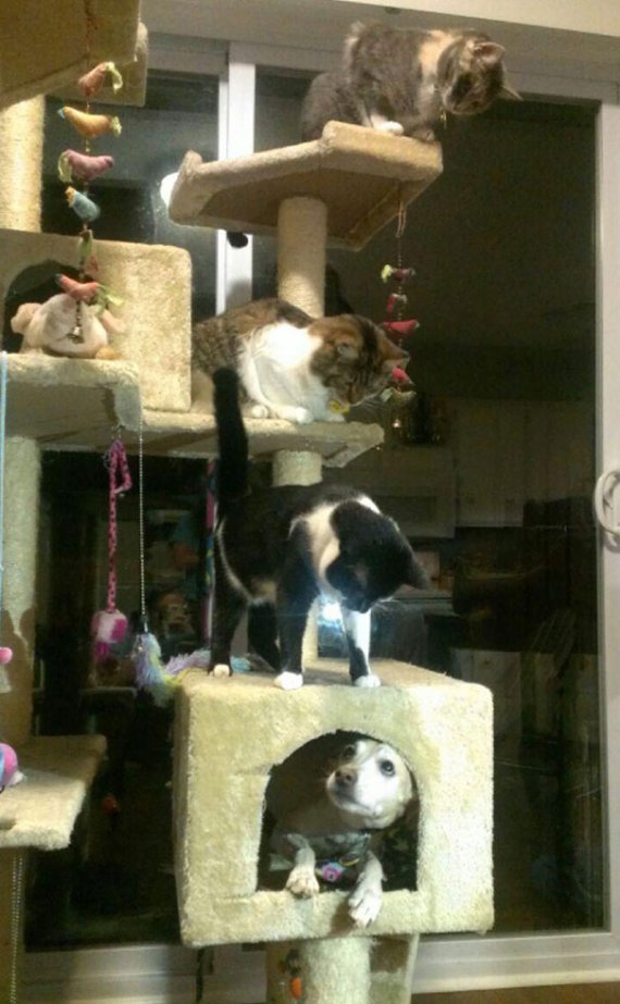 Якщо ж собаки проводять забагато часу зі своїми друзями-котами, то інколи переймають у них звички й уподобання. До людини гірше ставитися не починають, однак призвичаюються видиратися на дерева, окуповувати пусті коробки чи влаштовувати собі пункт спостереження на підвіконні. Підбірку фото, на яких закарбовані подібні випадки, презентував розважальний ресурс Justsomething.