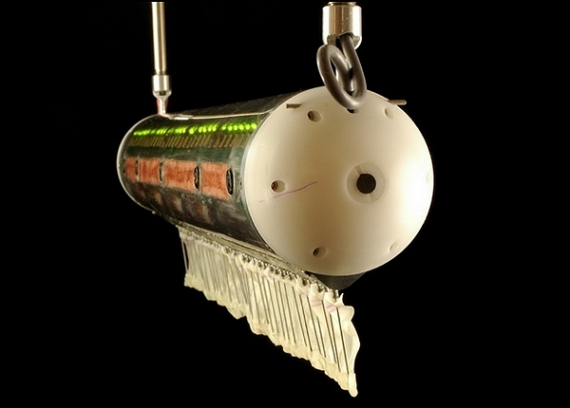 Дослідники з Північно-західного університету, США, створили рибу-робота. За допомогою складного приладу-плавця вона може плавати вперед, назад і навіть вертикально.