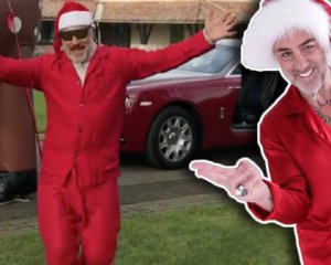 Він зобразив Санта Клауса на своєму Rolls-Royce, в який був "запряжений" надувний олень.