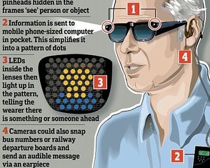 Вчені Оксфордського університету розробляють "розумні окуляри". Завдяки крихітним камерам і кишеньковому комп'ютеру вони зможуть попереджати сліпу людину про предмети і людей попереду неї.