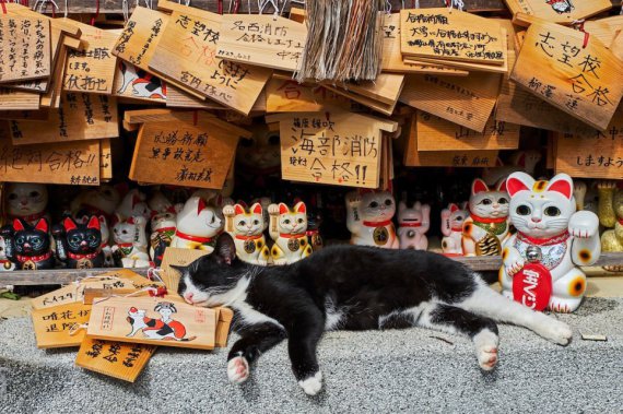 "У різних містах у кішок, як правило, однакові звички. Але ми помітили, що деякі кішки можуть бути більш сором'язливими, ніж інші. Однак тільки в Японії більшість кішок, яких ми зустрічали, зовсім не боялися людей. Вони знали, що люди тут добрі. Може бути, тому що їх годують", - говрить фотограф.