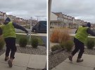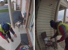 Один із курєрів так зрадів, що радісно затанцював на ґанку замовниці.