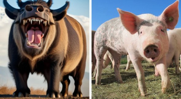 Мила пухка свинка походить від грізного монстра деодона, який жив на нашій планеті приблизно 20 млн років тому. Його довжина становила близько 2 м. Він мав довгу морду, високий горб, короткий хвіст і потужні зуби. Не дарма цю істоту прозвали свиня-термінатор.