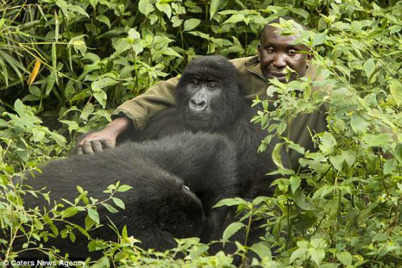 Фотограф із Ботсвани Джеймс Гіффорд сфотографував чоловіка під час спілкування з мавпою. Місцеві самиці горил ставляться до Андре, як до вожака зграї, передає слова фотографа Daily Mail.
