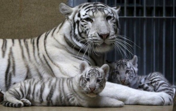 У сафарі-парку Бердянська народилися чотири унікальні білі тигренята з блакитними очима. Їх стать поки не відома. Таких тварин зараз у всьому світі не більше двох сотень.