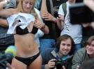 Зазначимо, що чоловіки позитивно відгукувалися на заклик дівчат і охоче розлучалися зі своїми пляшками в обмін на зняття чого-небудь з одягу.