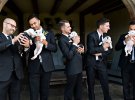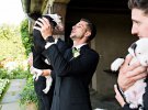 Для весільної фотосесії, Беккі та Джон замість квітів позували з цуценятами. Задоволені були як тварини, так і гості.