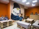 Замість меблів стоять палети з матрацами, на яскравих стінах намалювані пустуючі собаки. Цей пес-моряк явно буде часто з'являтися на фото в Instagram.