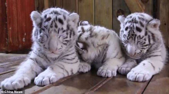 У китайському зоопарку Yunnan Wildlife Park свій дебют перед відвідувачами здійснили дитинчата Бенгальського тигра. Малятам усього 2,5 місяці.