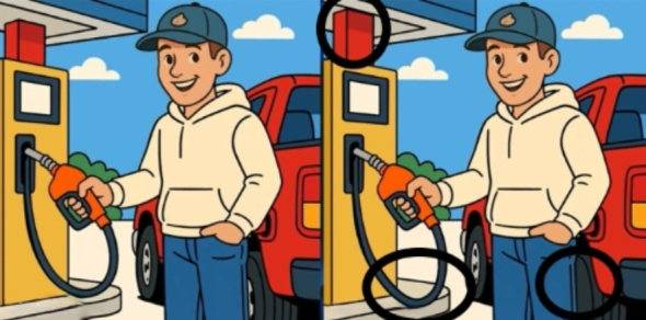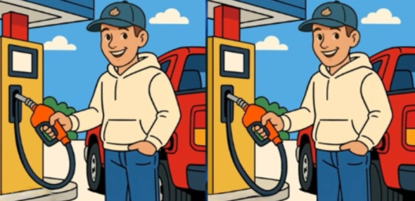 Уважно подивіться на ці два зображення чоловіка, який заправляє бензин. На перший погляд вони можуть здатися схожими, але вони різні.
