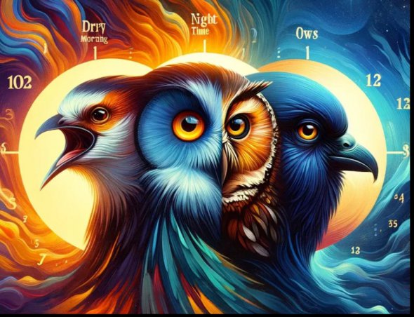 Голуб: Якщо ви відчуваєте себе найбільш збалансованими та продуктивними в середині дня, ви - голуб. Вам комфортно працювати і бути активними в широкому діапазоні годин, від пізнього ранку до раннього вечора, знаходячи золоту середину між ранковими жайворонками та нічними совами.