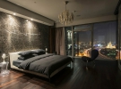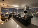 Вогні мегаполісу, проникаючі всередину апартаментів через панорамні вікна від підлоги до стелі, відбиваються від всіх глянсових поверхонь, а підіграють їм точкові елементи кімнатного освітлення.