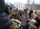 "Ідея виникла буквально вчора. Мабуть, тому прийшло мало народу. Не встигли всім повідомити. Всім так набридли морози, так хочеться прогулюватися по теплих весняних вулицях! Тому вирішили допомогти зимі нарешті піти від нас", - зауважила 16-річна дівчина-весна у яскравому віночку Анна Яськова.