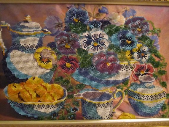 Жінка без рук вишиває картини бісером