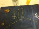 Жінка його зафіксувала, відрізала пошкоджені частини крила і прикріпила нове. Для цього їй знадобилися: рушник, дротова вішалка, контактний цемент, зубочистка, ватяний тампон, ножиці, пінцет, тальк, додаткове крило метелика, який помер кілька днів тому.
