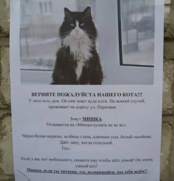 Зараз ви читаєте новину «"Зник злий кіт": 10 кумедних оголошень про тварин, які розсмішать до сліз». Вас також можуть зацікавити свіжі новини України та світу на Gazeta.ua