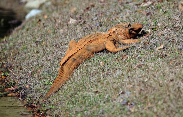 В американському містечку Хенахен місцеві помітили крокодила оранжевого кольору. Про це повідомляє видання Post and Courier, яке опублікувало знімки тварини. На них зображений алігатор розміром приблизно 1,3 м на березі водойми, в якій живе.