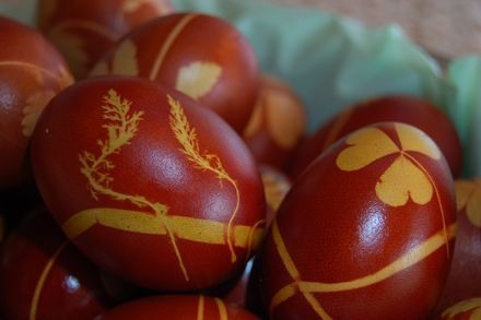 Після цього ганчірку і листочок знімають, а на яйці залишається його відбиток.