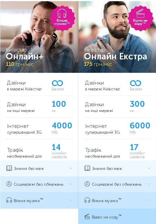 Для комфортного користуванням інтернету, цей оператор пропонує тарифні плани "Онлайн" та "Онлайн+"