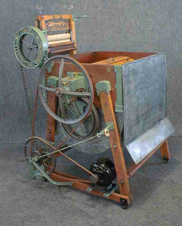 Через 10 років з'явились валики, які пропускали білизну. Це полегшило віджим мокрого одягу. Валики інтегрували у будову пральної машини, тобто апарат і прав, і витискував одяг.