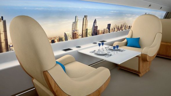Щоб знизити вагу фюзеляжу і збільшити його міцність, інженери позбавлять його ілюмінаторів. А щоб пасажири все таки могли милуватися виглядом за вікном, по всій довжині пасажирського салону встановлять рідкокристалічні екрани, які транслюватимуть картинку в реальному часі. Для цього ззовні встановлять камери.