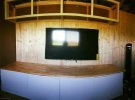 Усередині Таллі зробив кілька зон: задня частина автобуса перетворилася в спальню, а передня - в кухню, ванну і розважальну зону. Також зробив місце для "офісу", де він міг би працювати. Сам змайстрував шафи і полиці, після чого купив до них вже готові дверцята. В основній кімнаті встановив 4K телевізор і диван, назвавши це "своїм кінотеатром".