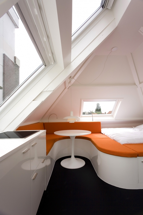 Дизайнери студії Queeste architected працювали над оформленням інтер'єру Maff Apartment. Житловий простір площею всього 30 кв. метрів виконано в стилі готельного номера, розташоване на мансардному поверсі приватного будинку і здається в оренду в Гаазі, Нідерланди.