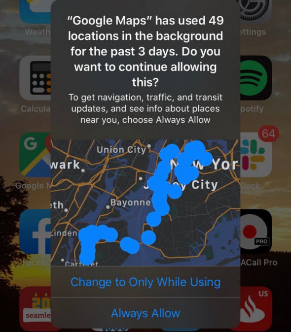 Розробники Apple змінили підхід і до використання персональних даних своїх клієнтів сторонніми додатками. Тепер система буде попереджати, як часто будь-яка програма використовує дані про вашу геолокації в фоновому режимі.