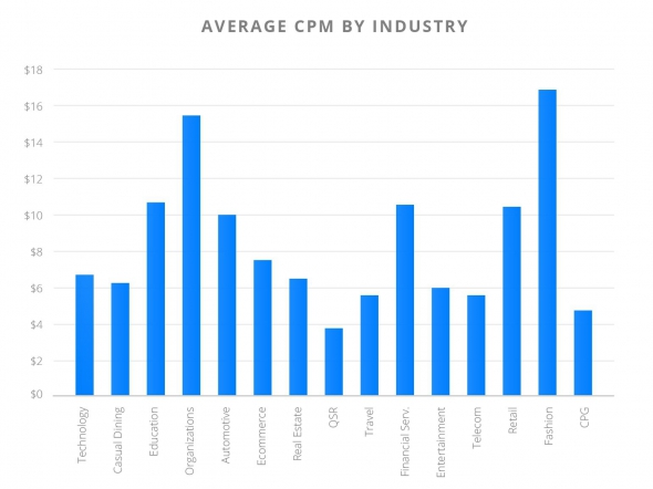 Також компанія представила інформацію про розподіл середньої вартості 1000 показів рекламних банерів з різних індустрій. Наприклад, фахівці розповіли, що рекламувати моду виявилося дорожче, ніж подорожі.
