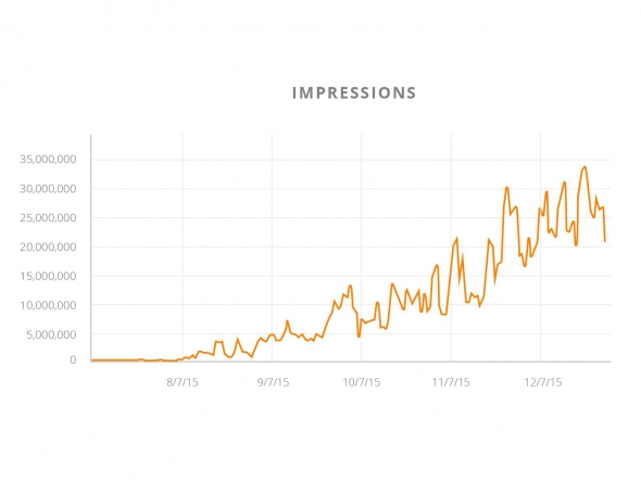 За місяць це число подвоїлося — 100 млн, а до грудня 2015-го число таких рекламних повідомлень сягнуло вже 670 млн.