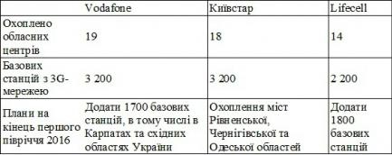 Таблиця можливостей трьох найбільших українських операторів стільникового зв'язку *