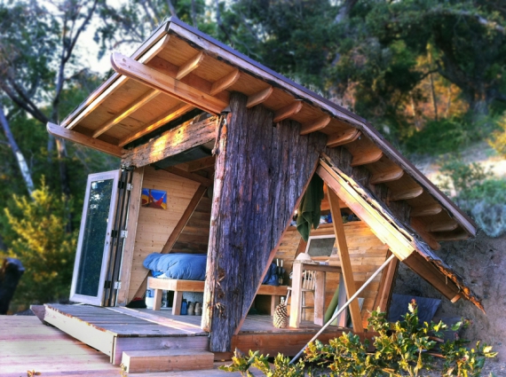 Архітектор Алекс Віндхем виконав проект невеликого дерев'яного будиночка на 8-ми квадратних метрах в мальовничих околицях каліфорнійських гір. Невелика конструкція відрізняється простотою і скромністю, а покритий дерном дах дозволяє йому злитися з навколишнім пейзажем. Внутрішнє оздоблення також досить просте і виконане з деревини. Усередині є ліжко, стілець і письмовий стіл.