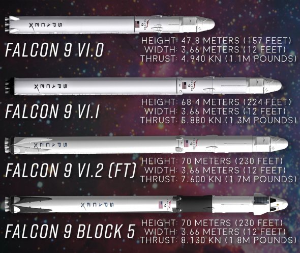 Block 5 — багаторазова ракета. Її головна відмінність від попередньої версії - у посиленому двигуні, модернізованих посадочних стійках і більш стійкому термопокритті.
