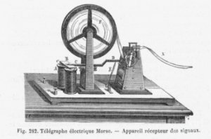 Для передачі даних використали ключ, винайдений російським ученим Якобі, а для прийому - електромагніт, якір якого управляв переміщенням чорнильного пера папером. Працюючи над подальшим удосконалюванням свого телеграфного апарата, Семюел Морзе винайшов і код - телеграфну абетку.