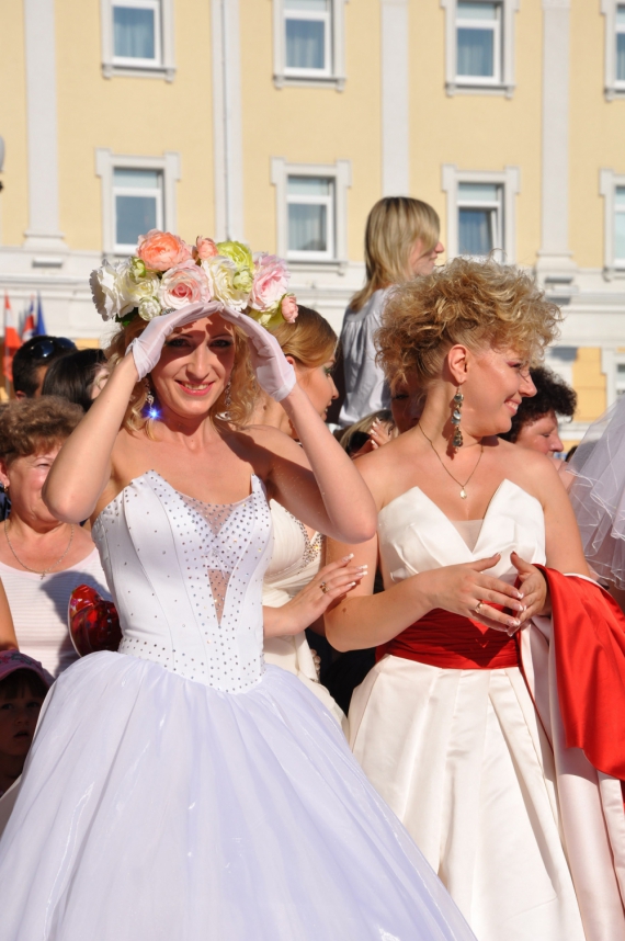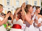 "Ми вже одинадцять годин на ногах. Обидві на високих шпильках – ноги гудуть, але ми тримаємося, - кажуть подруги Анастасія Якобчук та Оксана Прокопчук, які очолюють ходу. – Хочеться знову пригадати те відчуття свята – як воно було, коли йшли під вінець. Парад – це класна ідея, чому б не зробити життя веселіше? Оксана бере участь у Параді наречених вже вдруге. Хочемо усім показати, що заміжжя – це добре".