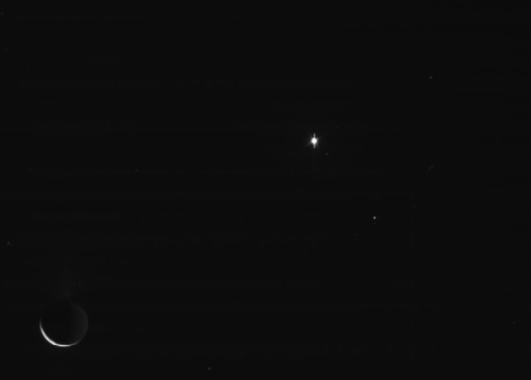 Космічний апарат Cassini сфотографував проліт Енцелада, шостого за розміром супутника Сатурна, на тлі центральної зірки поясу Оріона — Альнілама. Головне завданням зонду - вивчення зміни світу зірки після проходження крізь гейзери Енцелада. Знімки опубліковані в архіві зображень місії Cassini.