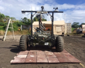У рамках експерименту на Гавайських островах побудували спеціальний майданчик із пилом, що імітує місячну поверхню. Телекерований робот розрівняв майданчик за допомогою відвалу, після чого з базальтових плиток зібрав тверду платформу площею 9,29 кв.метра.