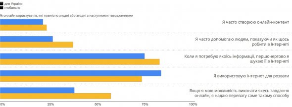 82% українців розважаються в інтернеті. 74% - шукають інформацію, 27% - допомагають, а 22% - розміщують контент.